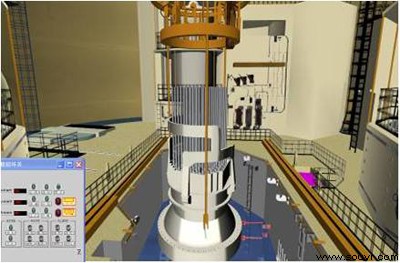 核电三维虚拟现实仿真系统是以微型计算机作为工作平台,通过仿真数学模型模拟核电站物理、工艺和控制过程,以计算机图形界面作为人机界面的仿真系统。该实验系统可实现对核电站的运行、控制、管理、维护、状态监测、故障诊断等过程进行计算机模拟和仿真。
